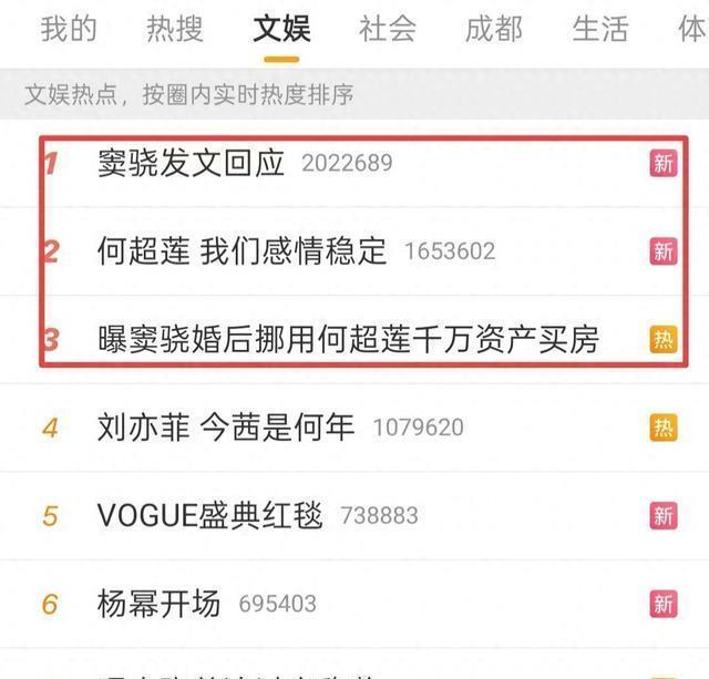 10月23日晚,窦骁何超莲婚变风波发酵了好几天,两人终于发文回应了,他们发文后立即登上了热搜前排,引发大众热议。